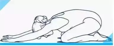 坐位膝關(guān)節(jié)分開,身體前彎,保持對下腰部舒適的牽伸。